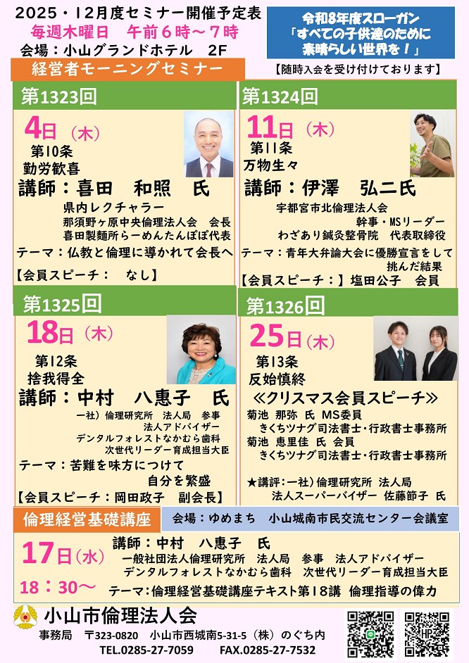 毎週木曜日、朝6時〜7時迄「小山グランドホテル」で開催しております。
